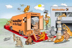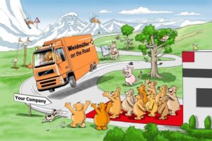 Der speziell ausgestattete Weidmüller-Truck wird nicht nur von einem bärigen Chauffeur mit vielen liebevollen Details von einem Ort zum anderen geführt, zu den Sujets zählen auch das Fitmachen des originellen Weidmüller-Trucks und das Begrüßungskomitee am jeweiligen Zielort. Mit dieser Art der Darstellung hebt sich Weidmüller im Bereich technischer Unternehmen bzw. Automatisierung deutlich ab.