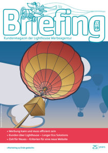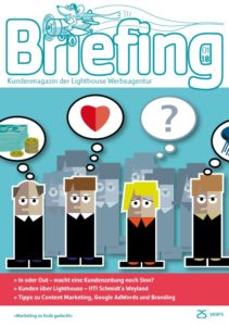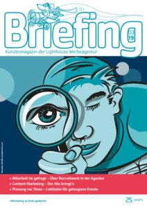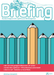 Wir haben unser Magazin „Briefing“ getauft, da für uns alles mit den richtigen Fragen beginnt. Erst wenn wir die Anliegen unserer Kunden konkret verstehen, gehen wir daran, ein passendes Konzept zu erarbeiten.